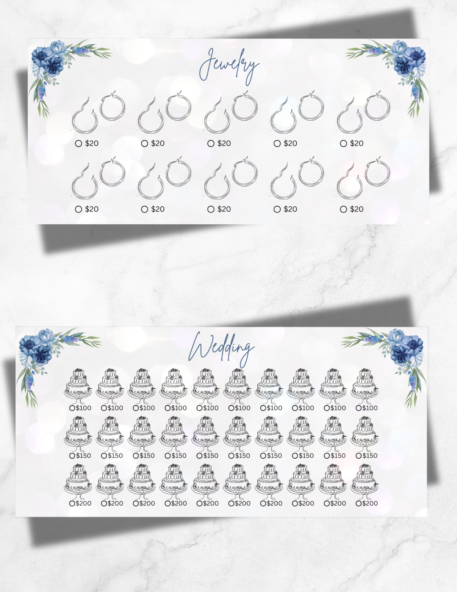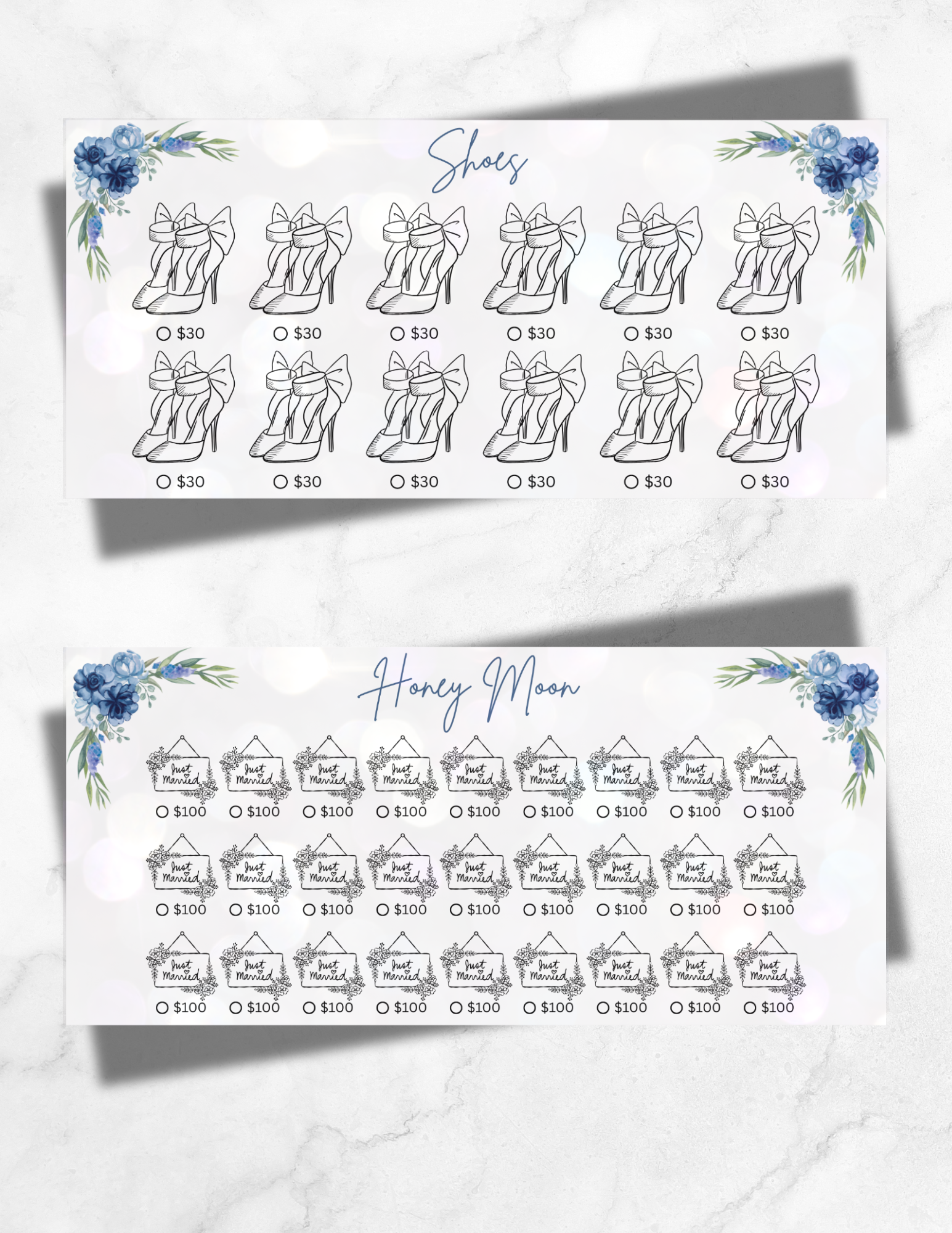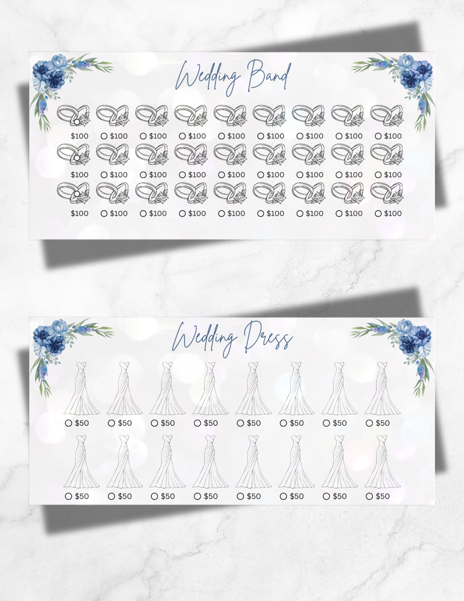 Get wedding-ready the smart way with this beautiful and functional Bride Savings Tracker – designed by a bride, for brides! Whether you're saving for your dream dress, venue, or honeymoon, this tracker helps you stay organized and motivated every step of the way. As every brides budget is different, there trackers are reusable helping you reach your specific goals.