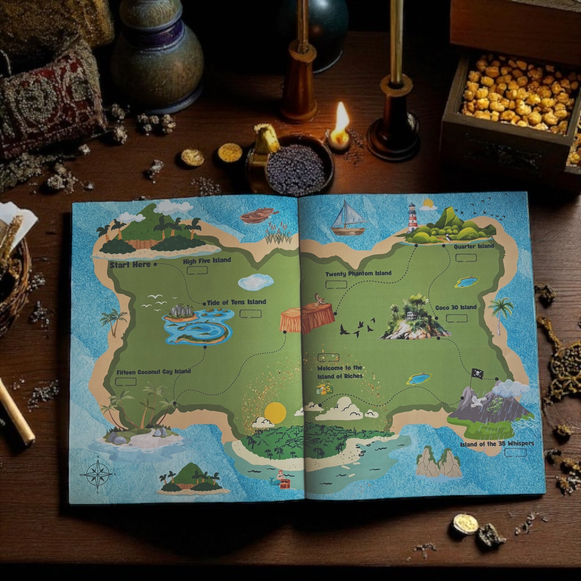 Your journey begins at the first island and takes you through 8 exciting savings challenges. Complete each goal, mark your progress with a special sticker, and unlock the next stage of your adventure—all while watching your money grow.